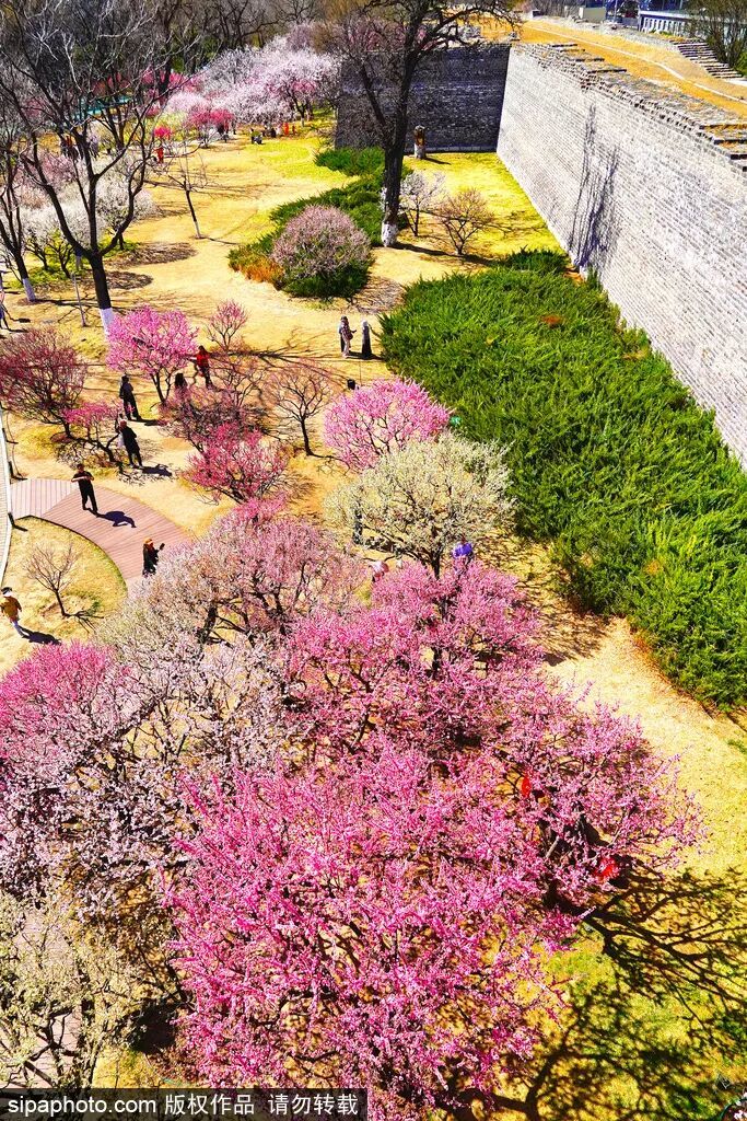 近日,北京明城墙遗址公园的梅花